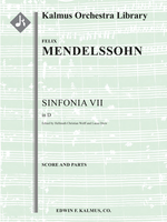 Description: This is the seventh among thirteen string symphonies written between 1821 and 1823, when Mendelssohn was twelve to fourteen years old. Like the other twelve, it was written as a tribute to early Classical symphonies by composers such as Haydn, J.C. Bach, C.P.E. Bach, and Mozart, a feature much more obvious in the first six as they were more imitative. The second grouping, starting with Sinfonia No. 7, show more of the composer’s emerging personal style. Mendelssohn composed most of the thirteen works in three movements, but his seventh is an exception to the rule, with four movements instead. A count of 8-8-5-5-5 strings are included in this set.