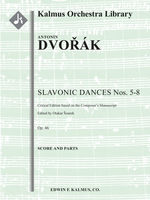 Description: Two series of “Slavonic Dances,” each of them consisting of eight numbers and separated by eight years, were composed by Antonín Dvo?ák. The idea was suggested to the composer by the publisher, N. Simrock, following the publisher’s introduction to Dvo?ák’s “Moravian Duets” by Johannes Brahms. Understanding the national characteristics and talent of the hitherto unkown Czech composer, Simrock suggested he create a series of “Slavonic Dances” in a style similar to that which had recently proved so successful in the base of Brahms’ “Hungarian Dances.” Using only the rhythms as the most characteristic and expressive element of Slavonic music rather than original folk dance songs, Dvo?ák quickly completed the first series of eight (Opus 46) for piano duet, often also orchestrating them while still composing. Considered one of the most personal, nationally most characteristic, and most famous of Dvo?ák’s works, this critical edition of Op. 46, Nos. 5-8 by Otakar Šourek was based on original sources. Instrumentation: 2+Picc.2.2.2: 4.2.3.0: Timp.Perc(3-4): Str(9.8.7.6.5 in set).