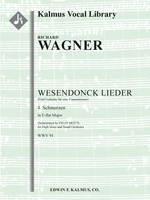 Description: Richard Wagner’s (1813-1883) collection of five songs titled FÜNF GEDICHTE FÜR EINE FRAUENSTIMME (FIVE POEMS FOR A FEMALE VOICE), WWV 91, is more commonly known as WESENDONCK LIEDER after the source of the poems, Mathilde Wesendonck. Mathilde was the wife of Wagner’s patron Otto Wesendonck, and there is some speculation that Wagner and Mathilde had a love affair that inspired the opera Tristan und Isolde (which are referenced in two of the songs, calling them “studies” for Tristan und Isolde), but the idea that these songs were also inspired by the same possible affair is given less attention. They were written originally for female voice and piano between 1857 and 1858, though Wagner did orchestrate No. 5, Träume, for chamber orchestra to be played at Mathilde’s window for her birthday on December 23, 1857. The remaining songs were orchestrated in 1893 by the Wagner conductor Felix Mottl. While originally written for the female voice, tenors have also contributed their own interpretations starting in the 20th century. The five songs are: 1. Der Engel (The Angel); 2. Stehe still! (Be still!); 3. Im Treibhaus – Studie zu Tristan und Isolde (In the Greenhouse); 4. Schmerzen (Sorrows); 5. Träume – Studie zu Tristan und Isolde (Dreams). This edition of No. 4: Schmerzen is in E-flat major and is transcribed by Felix Josef Mottl for small orchestra and solo voice. Instrumentation: 2.2.2.2: 4.1.0.0: Str (9-8-7-6-5 in set): Solo Voice. Reprint edition.