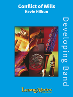 Description: Teaching points abound in this exciting work, but technique does not get in the way. Some eighth note/eighth rest counting spices things up and a wider than usual array of percussion instruments adds to the mix. Bold, scintillating, and enjoyable, Conflict of Wills can open or close your concert with a bang!