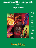 Description: The delectable melodies that comprise INVASION OF THE UNICYCLISTS will please just about everyone. The bright 6/8 meter gives a lilting feel to this traditional, yet highly original, work. No blistering woodwind runs, no audacious brass licks, just solid scoring and singable tunes!