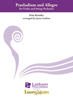 Description: Praeludium and Allegro, composed by Fritz Kreisler during his long and prestigious career is considered one of the great standards of violin music. The composition was originally attributed to Pugnani, and is often interpreted as a very Romantic homage to a Baroque Italian virtuoso. This arrangement by Lynne Latham for violin and strings allows orchestra directors the opportunity to feature a violinist in this exciting work from the standard violin repertoire.