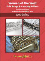 Description: This collection contains intermediate arrangements of cowboy songs and ballads for flute and piano, often invoking the style of Aaron Copland. Contents: Fair Fannie Moore, Belle Starr, Flora Lily of the West, Sweet Betsy from Pike, Oh My Darling Clementine, and The Yellow Rose of Texas.