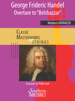 Description: Though in 1744 Handel presented the oratorio BELSHAZZAR as an oratorio, or religious work, it was later staged many times operatically. The opening should be neither too slow or too fast, and perhaps maybe thought of as an introductory fanfare for strings. (The original included oboes.) For better attack, bowing marked in the score as ‘hooked’ may rather be played separately and nearer the frog, but this might require greater technical ability.