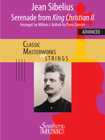 Description: The SERENADE is the prelude to the third act of Adolf Paul’s play KING CHRISTIAN II, for which Sibelius composed the incidental music. The SERENADE, preceding a court ball scene, is perhaps suggestive of the King’s and Dyveke’s love, and is emblematic of the composer’s distinctive compositional style. That style, eminently apparent in this piano quintet arrangement, features a drive towards continuous growth by means of steady thematic transformation and supportive, highly diversified ostinato textures.