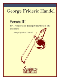 Description: The only edition of this work that includes a Bb treble solo part for trumpet or euphonium in addition to the bass clef part. Originally for flute, this five movement sonata is an ideal recital piece; lengthy enough to be considered a major work, varied enough to prove the performer’s ability in technique, sound, control, range and musicianship; yet not so difficult to be out of the range of the average high school trombonist.
